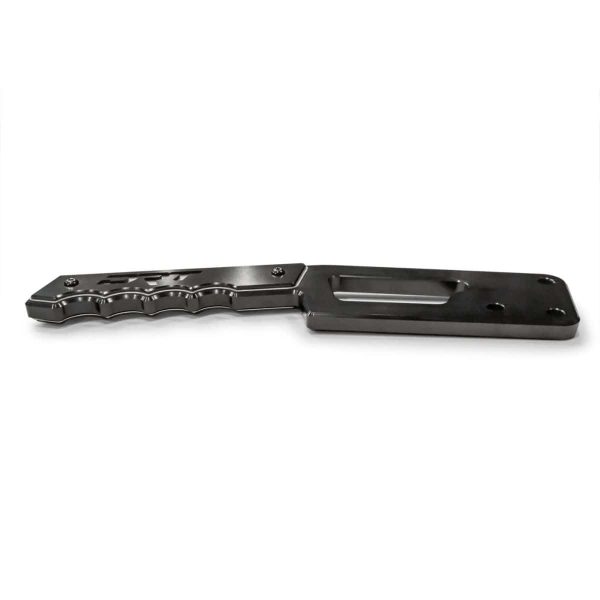 El asidero está fabricado con equipo CNC de última generación a partir de un bloque de aluminio de grado aeroespacial. Su construcción en capas intercala una placa de contraste anodizada transparente entre la placa del logotipo de DRT para añadir un estilo agresivo al interior. El acabado anodizado de grado militar se aplica a la base del asidero, la placa de contraste y la placa superior. El uso de herrajes de acero inoxidable con revestimiento negro mantiene el conjunto unido.
